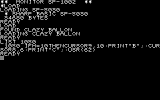 新版の起動メッセージ。同じかと思いきや…LOADINGメッセージ(ファイル名)が「BASIC SP-5030」からシンプルな「SP-5030」に変更されています。