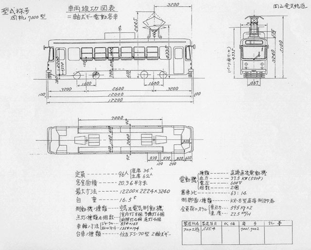 岡山電気軌道電車課から頂いた岡軌7000型竣工図。