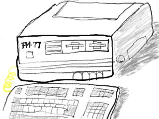 ちなみに、FM-8/7の時代は記録メディアといえばコンパクトカセットテープでした。要するにウォークマンで使うアレです。一応データ記録用とか出てましたけど、音楽用との違いが分からなかったですね。私は蒲田で1本100円以下で売ってるようなナゾのメーカー製のヤツを愛用してました。すでにカセットにプログラムを記録したなんてことを知らない人のほうが多くて、先日会社にテープ版のソフトを持っていったら、「ナニ?コレ?これにゲームが入ってるの?」、「どうやって読み込むの??」状態です。DOS/V以降から入ったヒトには当然ですよね。5"のFDだってビックリされることがありますからね。で、肝心のテープですが、FMでは0を1200bps、1を2400bps(だったかな)で記録していますので、平均すると約1600bpsの転送速度になるわけです。ざっくり、160Byte/sec(ちなみに、CD-ROM1倍速は150KByte/sec)…ゲームが始まるまでのロード時間が5分を超えるなんてザラでした。のどかなもんですな〜
