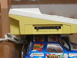 で、以外によく知られているように、FM-XはFM-7とつないで連携プレーが出来るようになっていたりします。うちのFM-X君にもインタフェースカートリッジはついてるんですが、肝心のFM-7側のインタフェースボードが無いために連携プレーが出来ません。あってもつながないと思うけど。