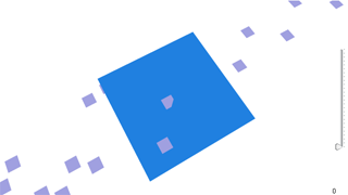 小さな板の高さ座標は1にしてあります。位置が0の大きな板よりも1だけ離れた位置です。大きな板と同じ位置の0でもいいのですが同じ座標だと埋まっている印象なので、ちょっとだけ上にある感じです。大きな板のlayerIndexは0、小さな板のlayerIndexは生成するたびに1に設定しています。このようにすると、どんな状態であっても、大きな板を描いてから小さな板を描くようです。