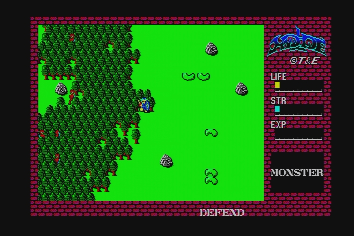 ハイドライドのロード中の画面をみると気がつくのですが、途中に太い黒線がみえています。画像を拡大すると、画面が全体的に明るいところと暗いところが交互に表示されていて、その境目になっているようです。