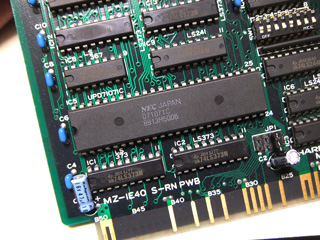 ![]() 基板上の主要なLSIを見ていきましょう。まずはバスコネクタ近辺のこいつ。uPD71071C、NECのVシリーズ周辺LSIであるDMAですね。 uPD71071は本体にもありますけど、ここに置かれているということは、バスマスタ転送用ということですかね…? |