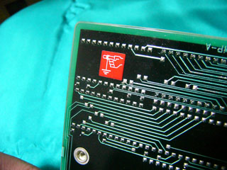 購入時に入れられているビニール袋。当時プリント基板は静電気による機器の破損を防ぐため、アルミホイルにくるまれているのが普通でした。これは、万一静電気の高電圧がかかっても基板全体がその電圧になることで実際には電気が流れないようにするためです。