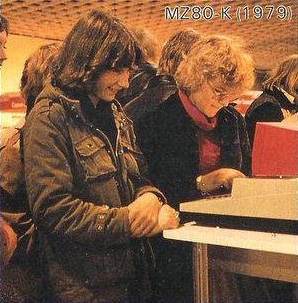 シャープ(株)MZ80Kの基本タイプが一般にお目見えしたのは昭和53年秋のエレクトロニクスショウの会場でした。グレイのケースに収まった"マイコン博士MZ80"(当時の名称)は外観的には現在のMZシリーズと同じ,ただキーボードの右に大きな電源スイッチが付いていました。