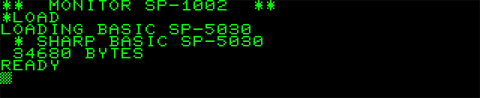 新版の起動メッセージ。同じかと思いきや…LOADINGメッセージ(ファイル名)が「BASIC SP-5030」からシンプルな「SP-5030」に変更されています。