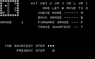 | 左上の'#'で囲まれたエリアがゲームのフィールド。グレードによって大きさが変化する。場にあるキャラクタの意味は以下の通り。 M:Man O:障害物 *:宝石 G:ゴール I,K,J,Lキーを押すとMが上下左右に移動する。 MはOと*を押すことができる。進行方向がふさがっている場合は押せない。また引っ張ることもできない。 移動以外のキー操作は M:今のグレードをやり直し B:一つ前のグレードに戻る F:一つ先のグレードに進む(現在のグレードをクリアしたことがないと機能しない) T:クリアした手順の再生 各グレードをクリアすることが第一目標だが、再度チャレンジしより短手番のクリアを目指すのもこのゲームの目的になっている。 |
